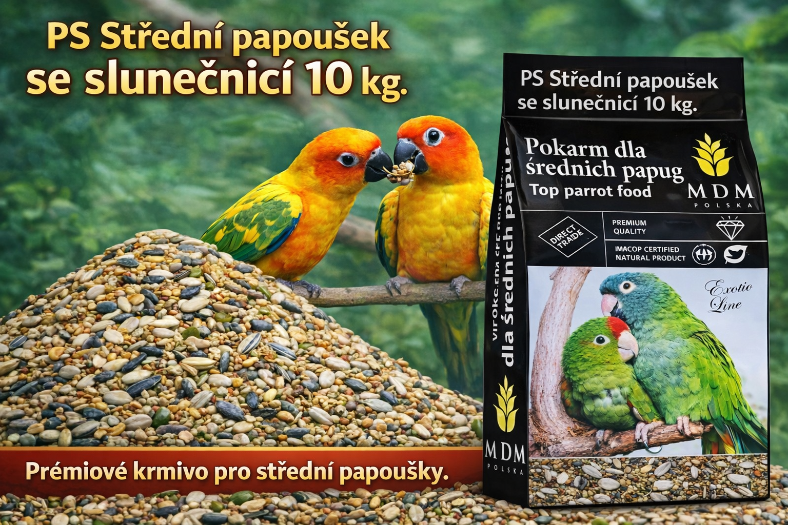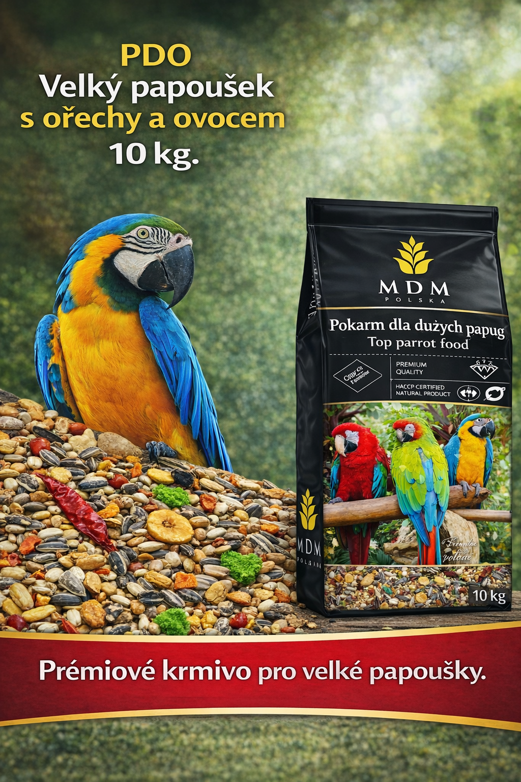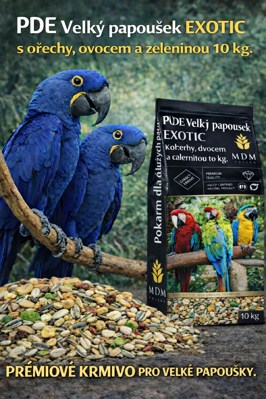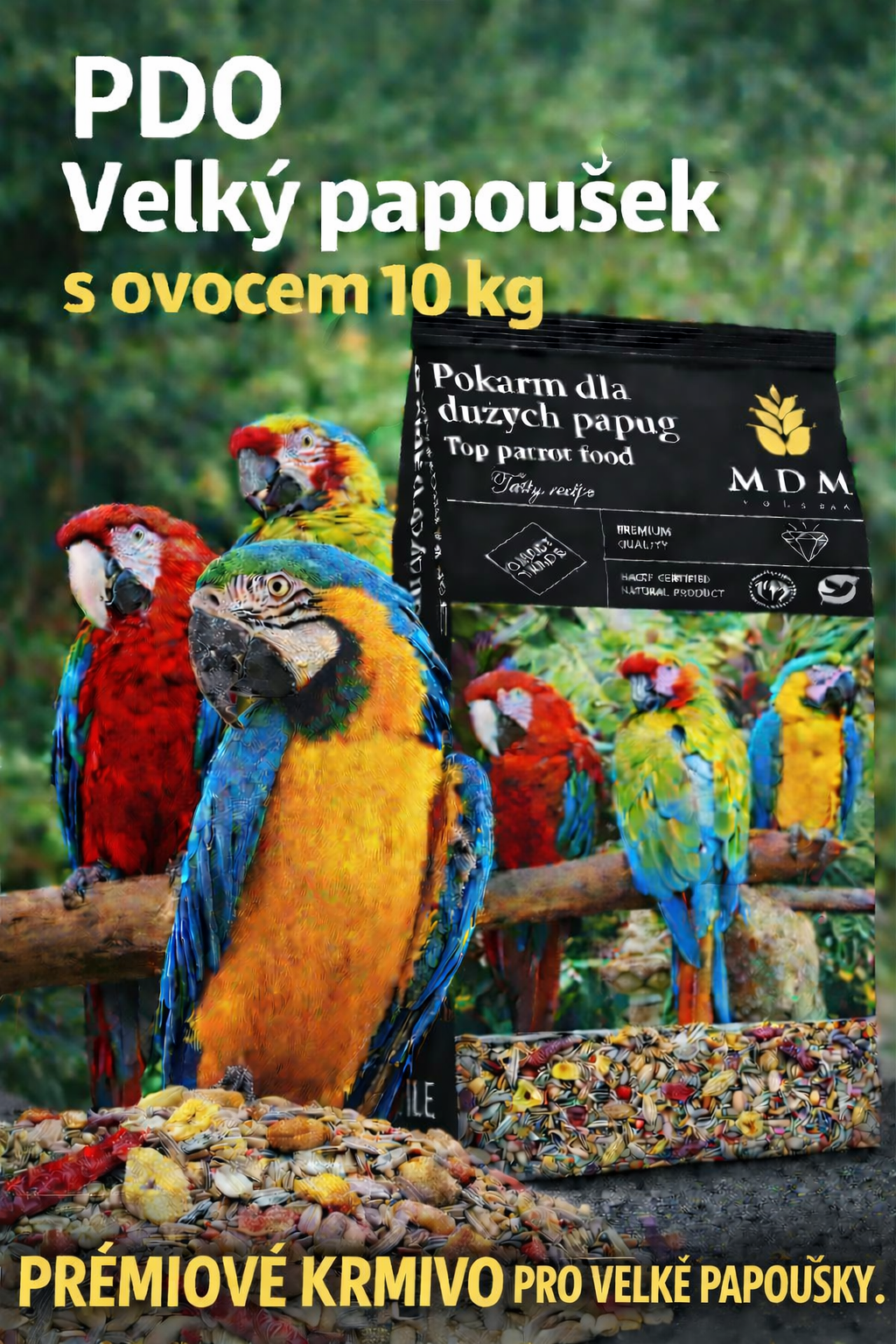 PDE Velký papoušek exlusiv s ovocem, zeleninou, piniové a kešu oříšky 10 kg. Vyprodáno 530,00 Kč 0,00 Kč